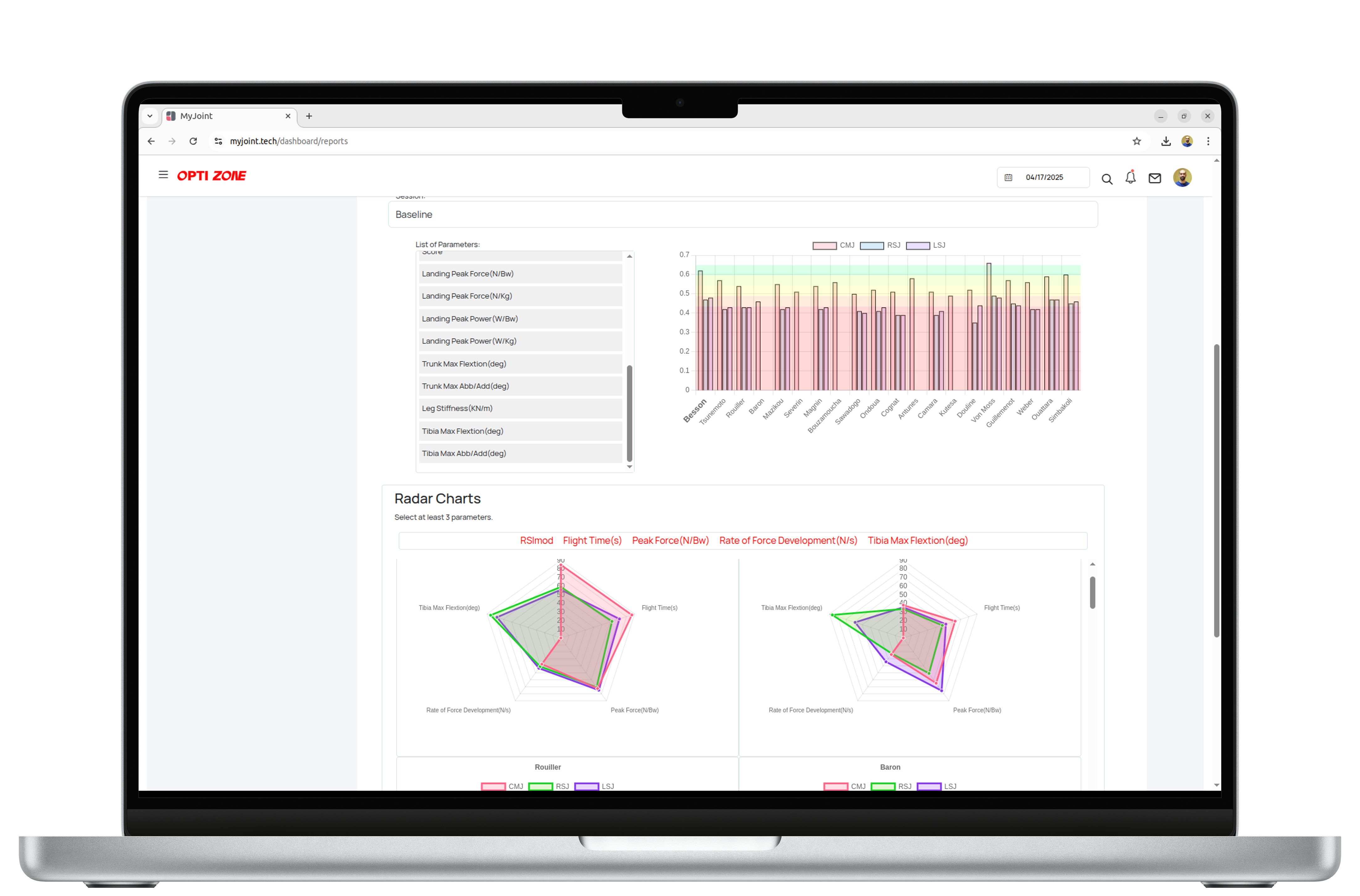 OptiZone generates detailed reports on athlete performance, highlighting strengths and areas for improvement.